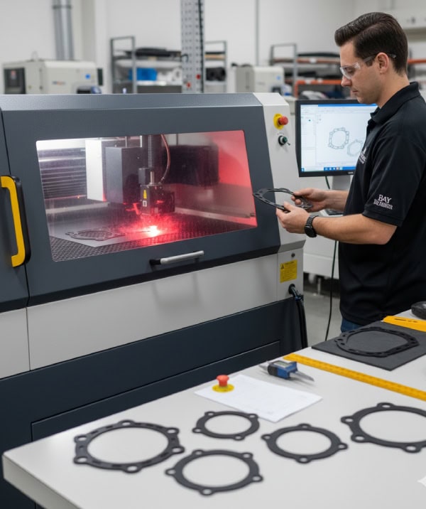 Contact Bay Rubber Company today to see how laser cutting can help grow your business.